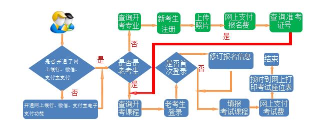 全省自学考试全部实行网上报考(含应用型专业学制外考生)。考生使用准考证(新生注册使用身份证)和开通电子支付功能的微信、支付宝、银行卡直接登录